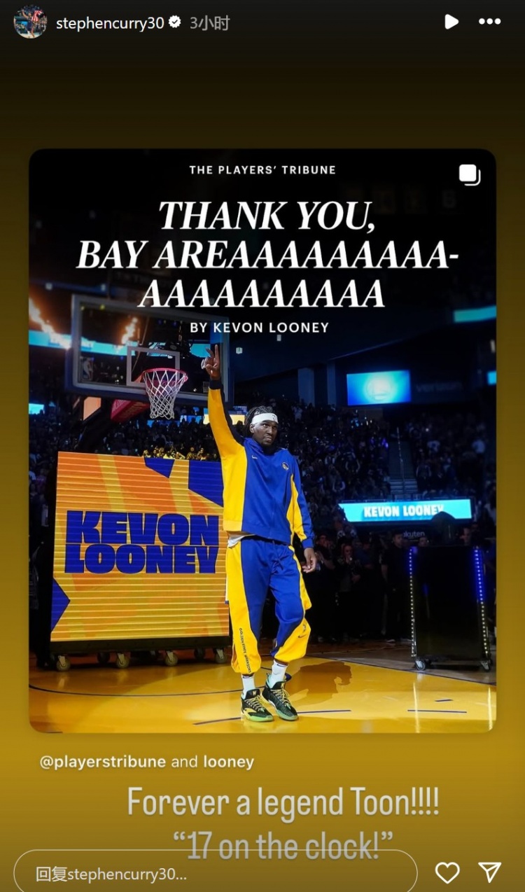 对此,勇士球星斯蒂芬-库里评论道:“永远都是一个传奇,卢尼!!!!”